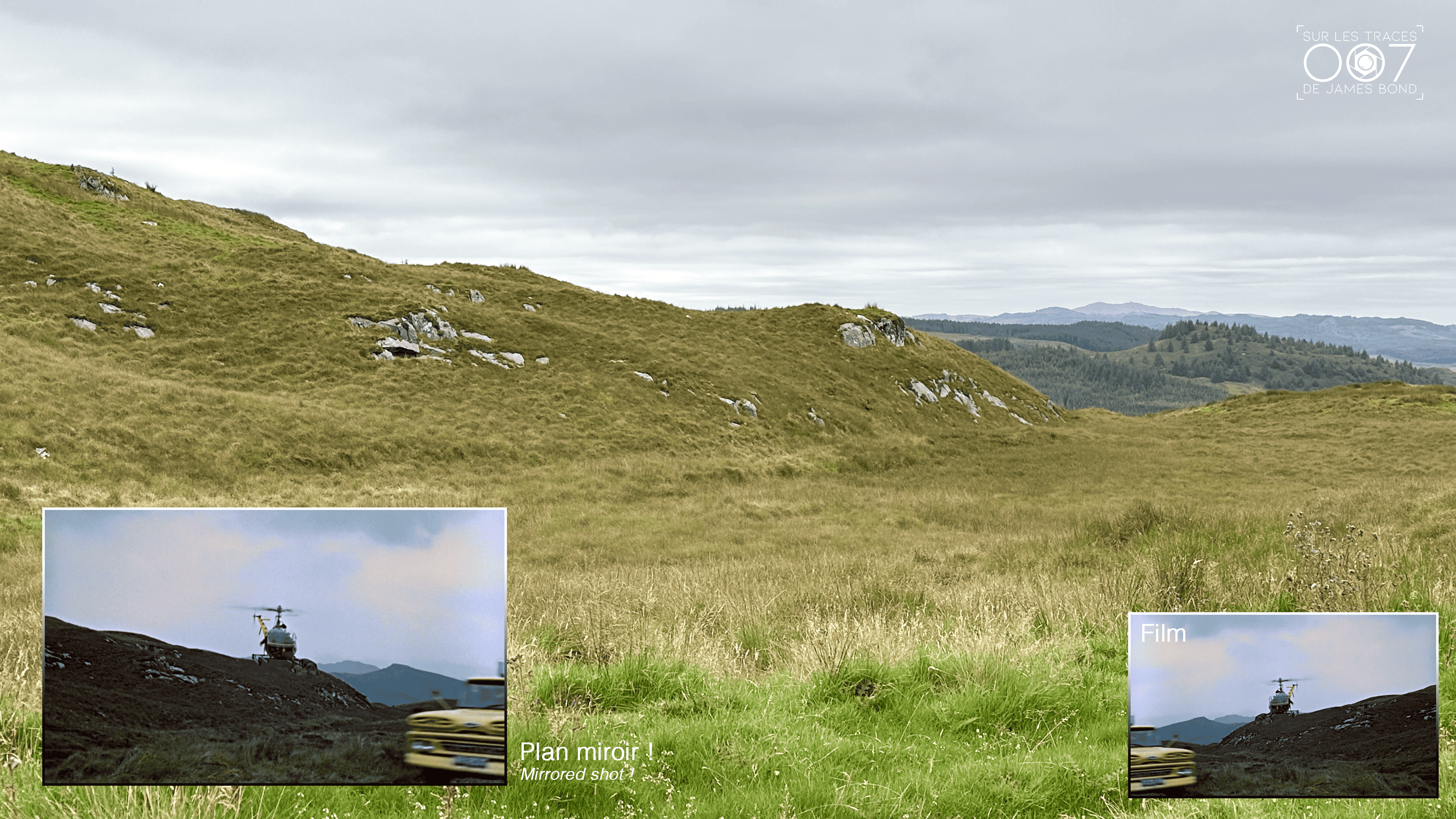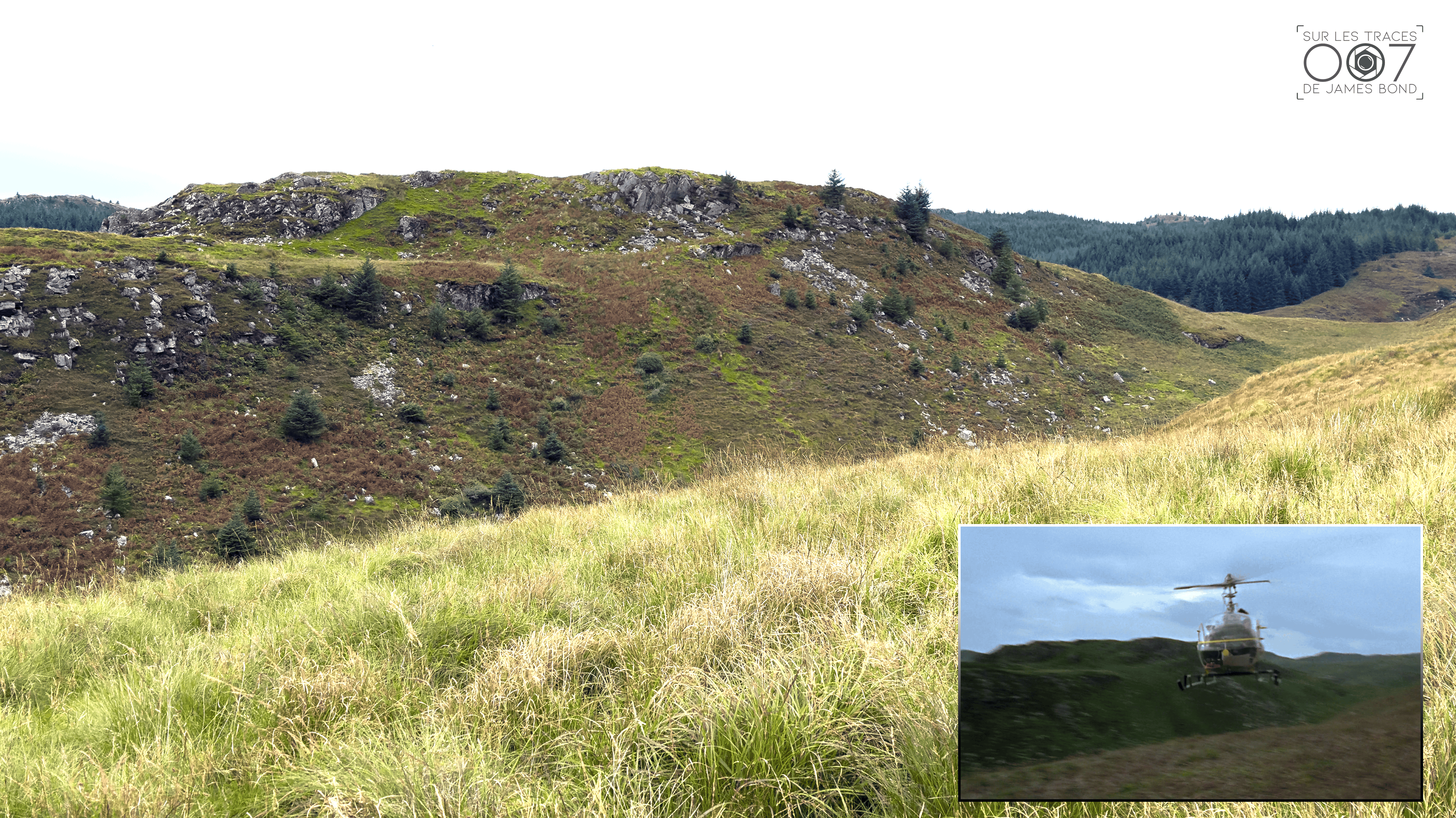 Un peu plus loin, on retrouve la zone où Sean Connery est attaqué par l’hélicoptère volant à très basse altitude. Il n’a pas toujours été évident de retrouver tous les angles, car même si, au premier abord, rien ne semble avoir changé, la végétation a tout de même modifié l’ambiance du site.