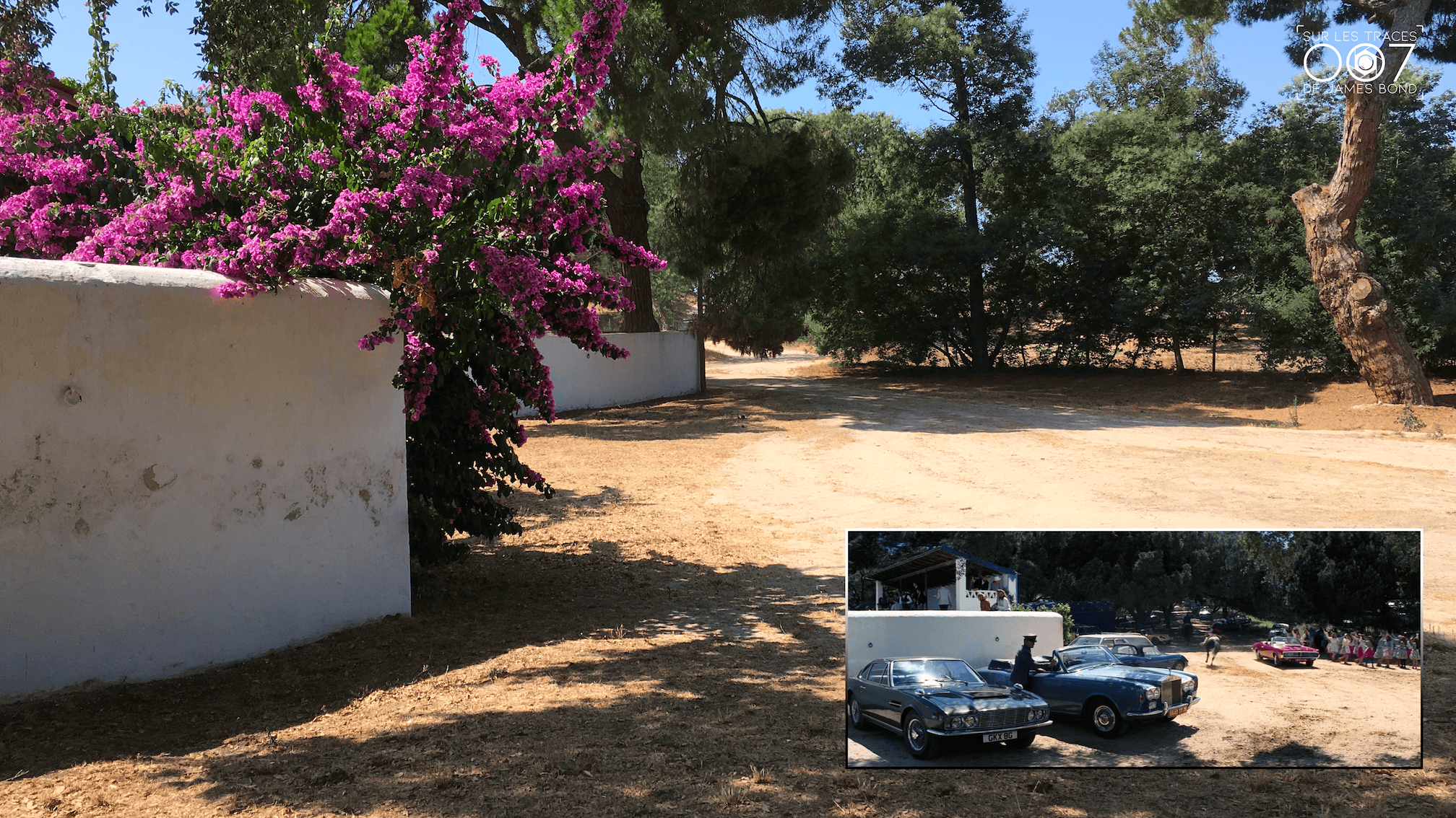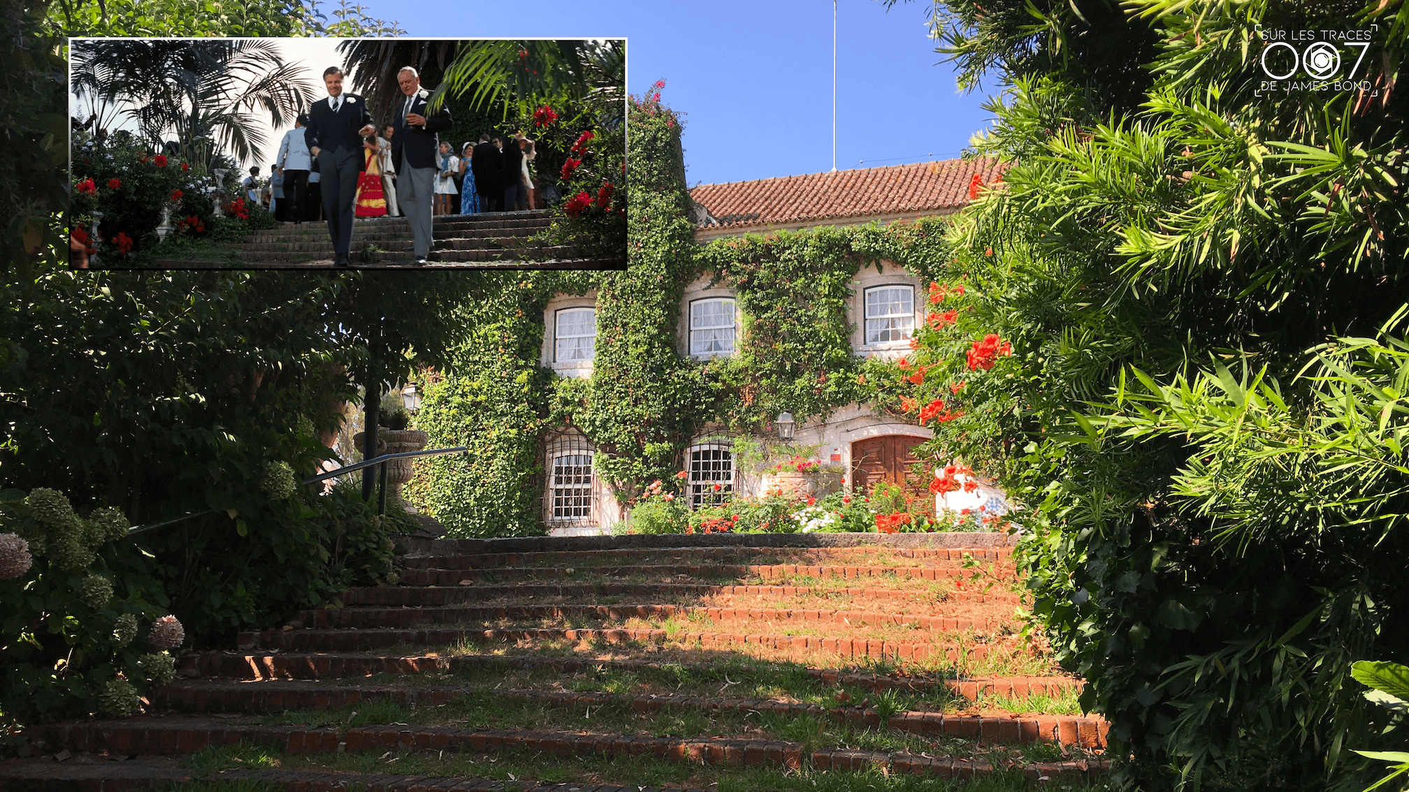 En empruntant l’allée fleurie que l’on aperçoit dans On Her Majesty’s Secret Service, nous atteignons la cour principale, la même que Tracy traverse avant d’assister à l’anniversaire de son père.