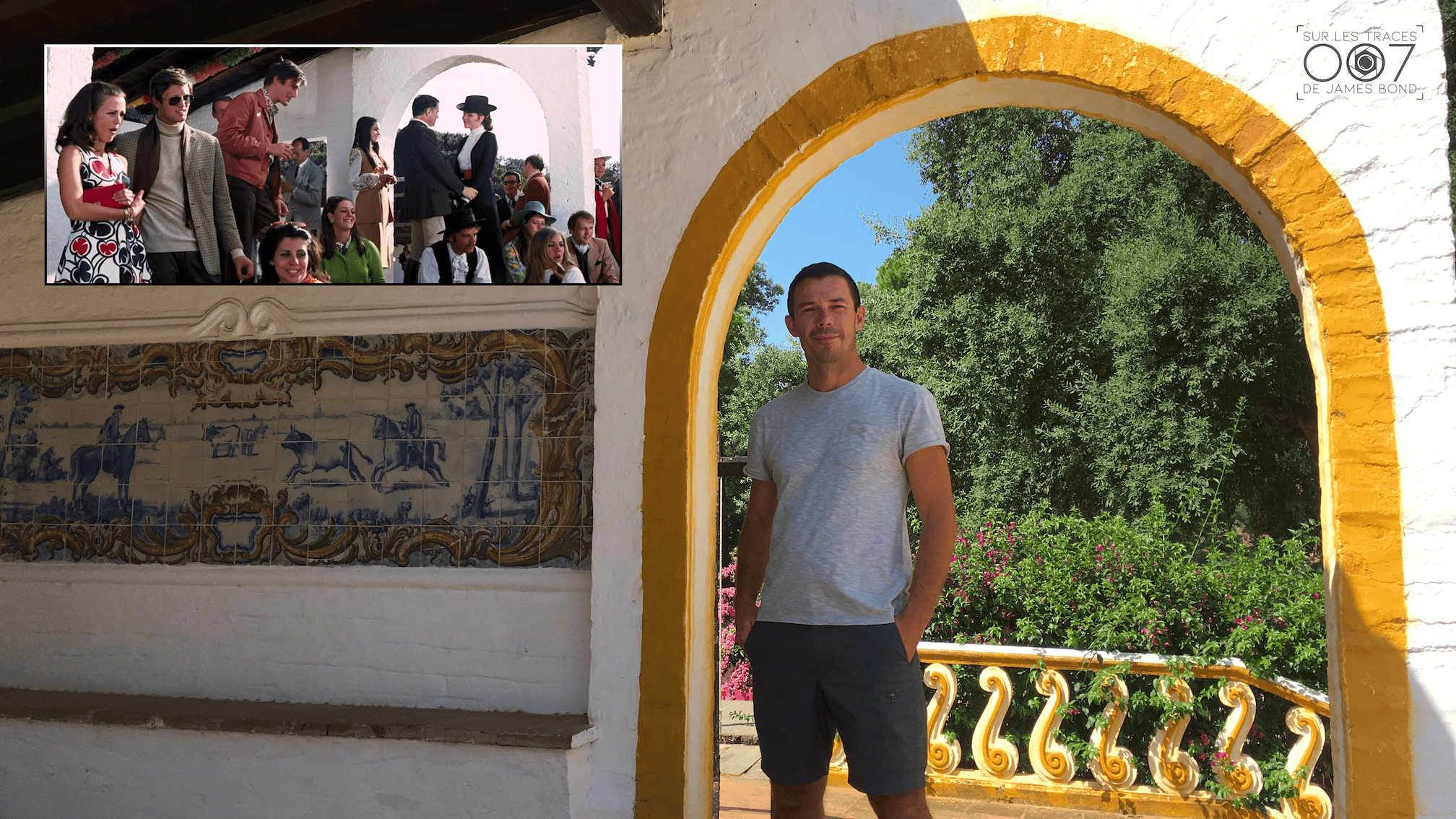 Avant de nous diriger vers les arènes, nous avons la permission de prendre quelques photos dans la cour. Le bâtiment est identique à celui du film — majestueux — à l’exception de la fontaine, qui n’est pas la même que celle filmée par Peter Hunt.