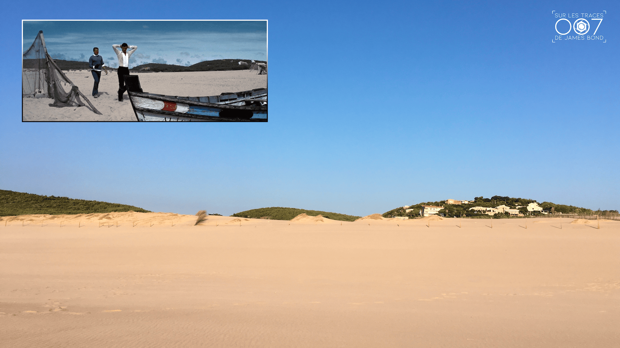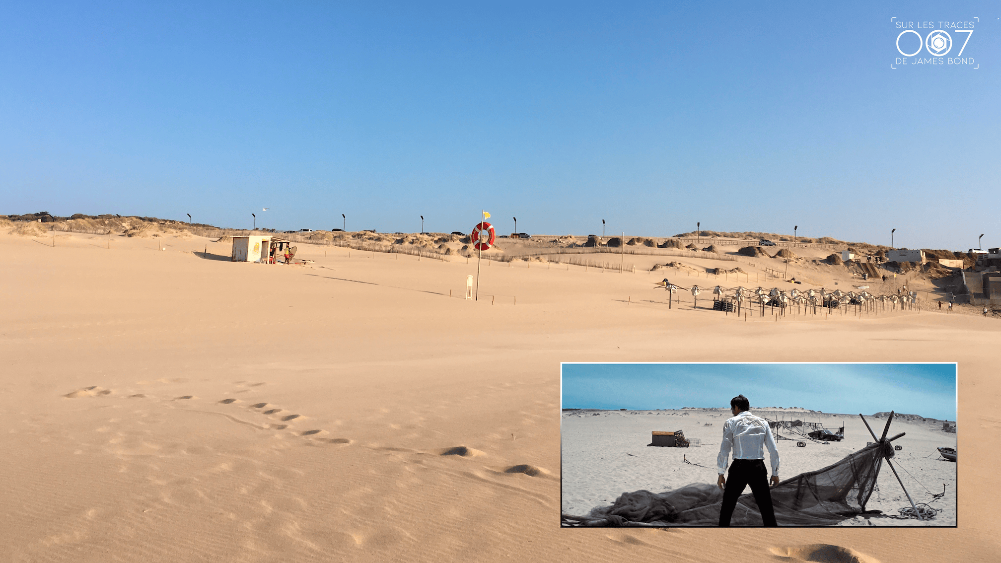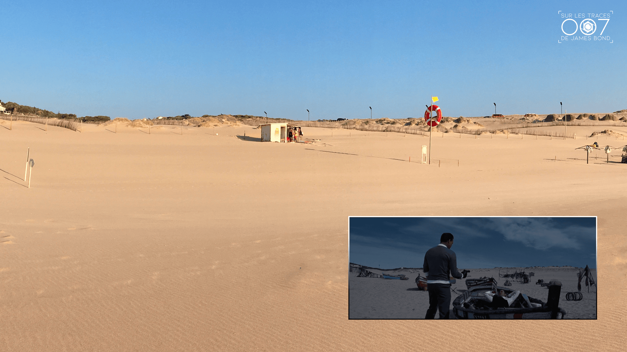 On y retrouve notamment la fameuse borne 247-91, visible à l’écran au moment où Bond découvre la plage.
