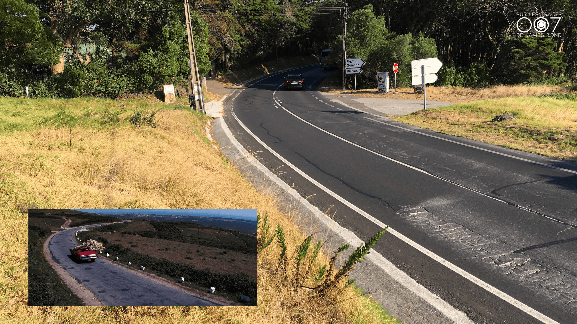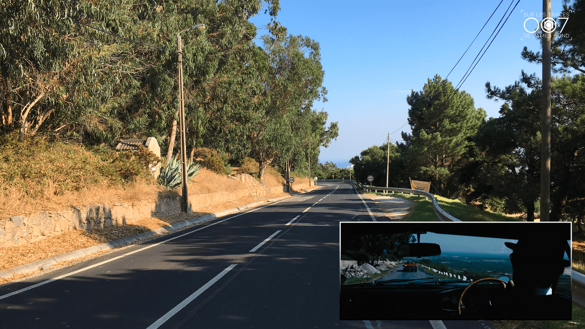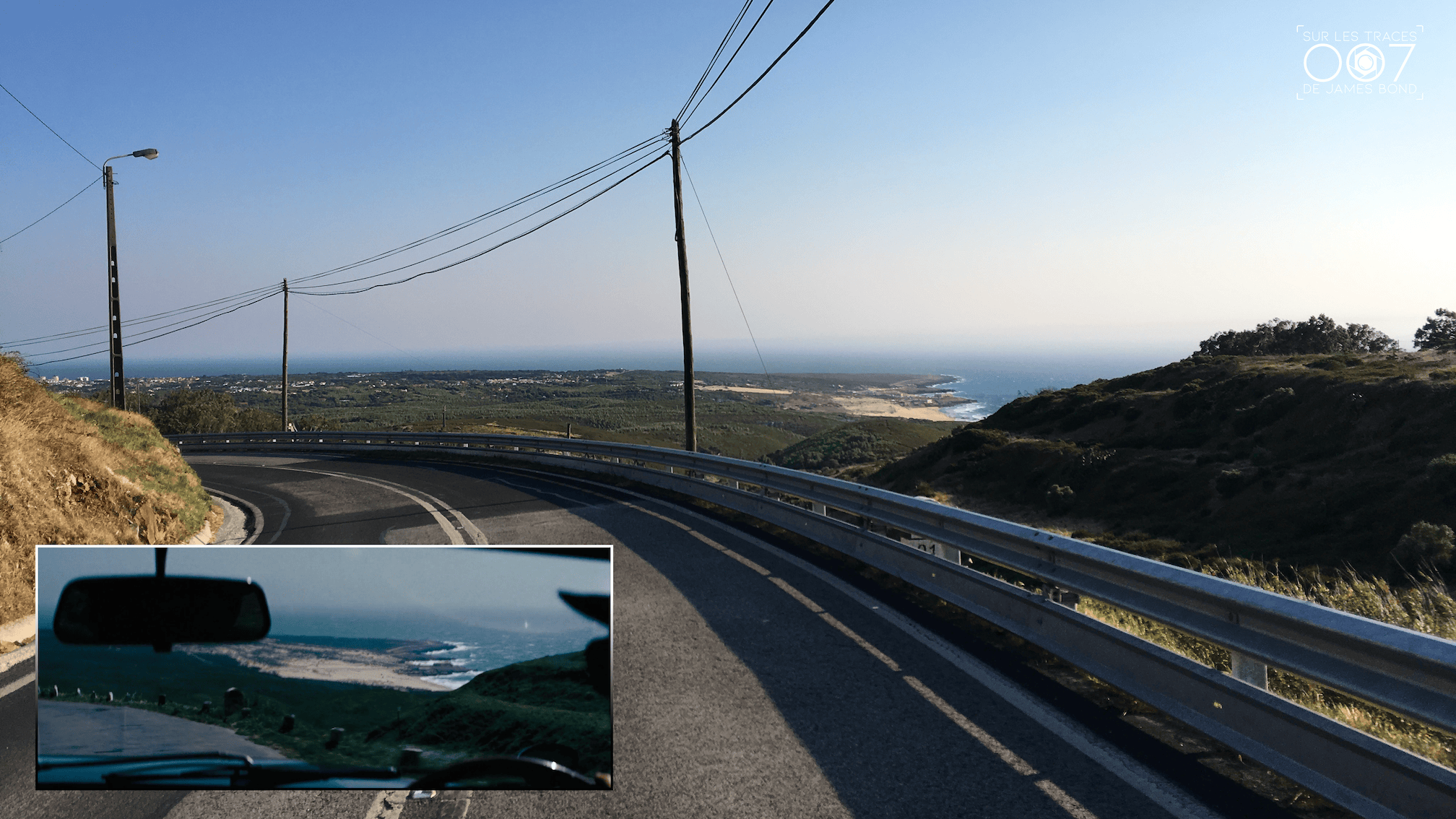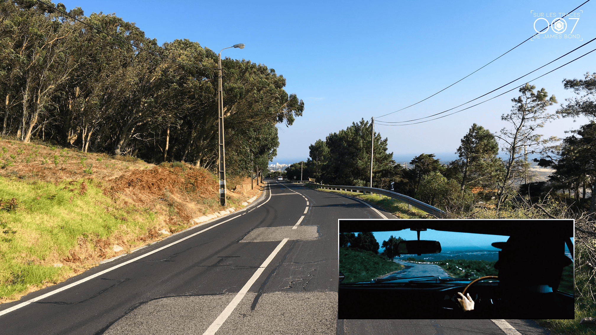Après une superbe journée au Palais national de Sintra — où se garer s’est avéré un véritable cauchemar, malgré la beauté du lieu — nous avons entamé notre retour par la route côtière EN247… la même que celle empruntée par Bond dans les toutes premières images du pré-générique.