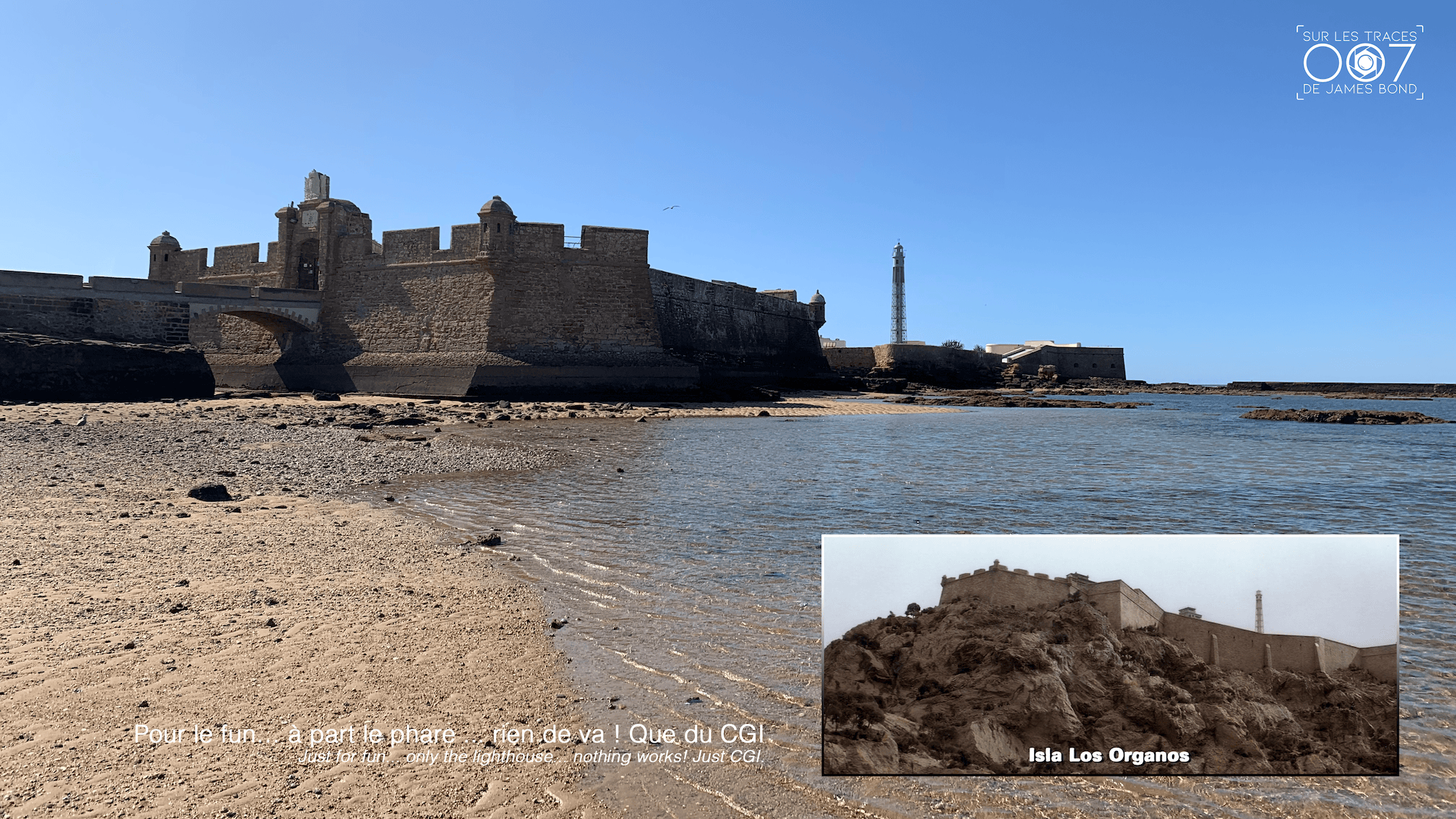 Depuis 2019, le Castillo de San Sebastián a rouvert ses portes, et toutes les photos de la fuite de Zao en hélicoptèreainsi que de la double poursuite Bond/Jinx y sont désormais entièrement réalisables.