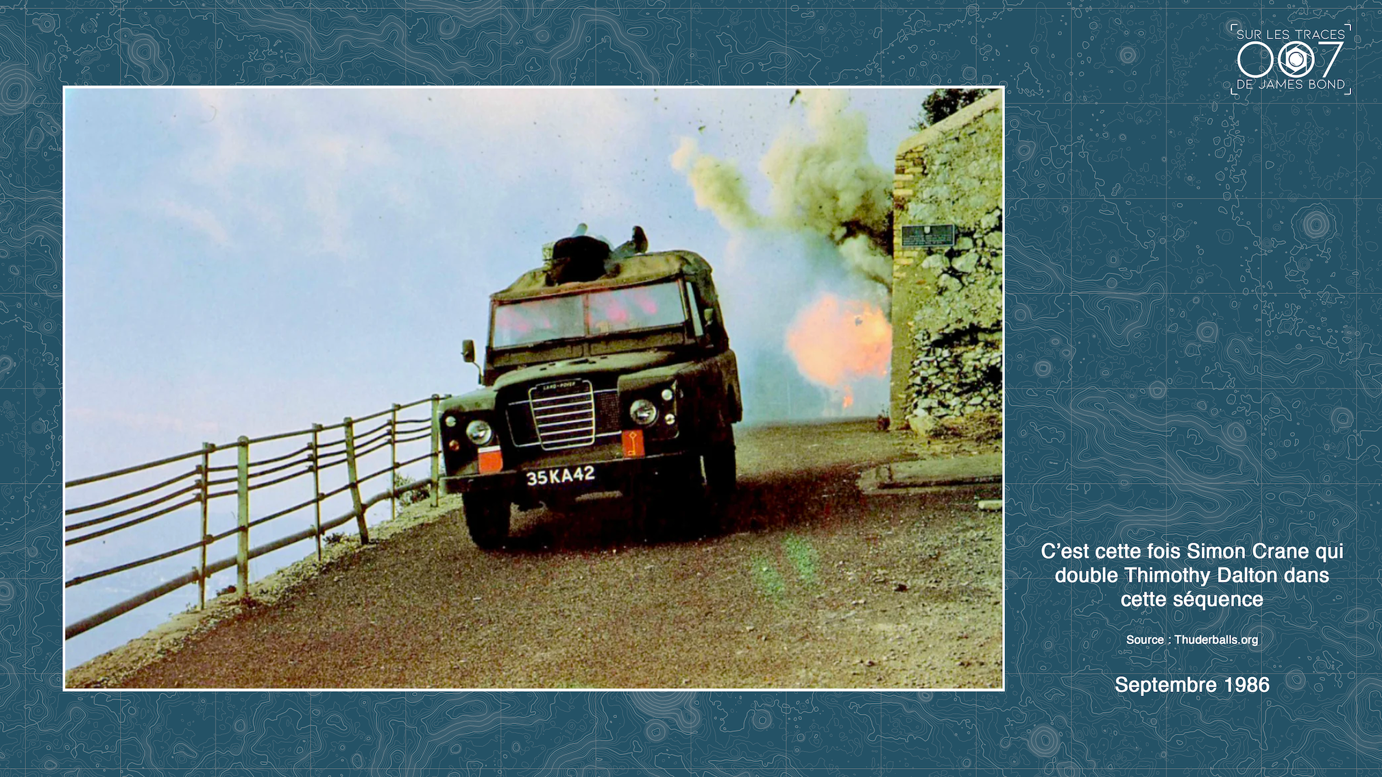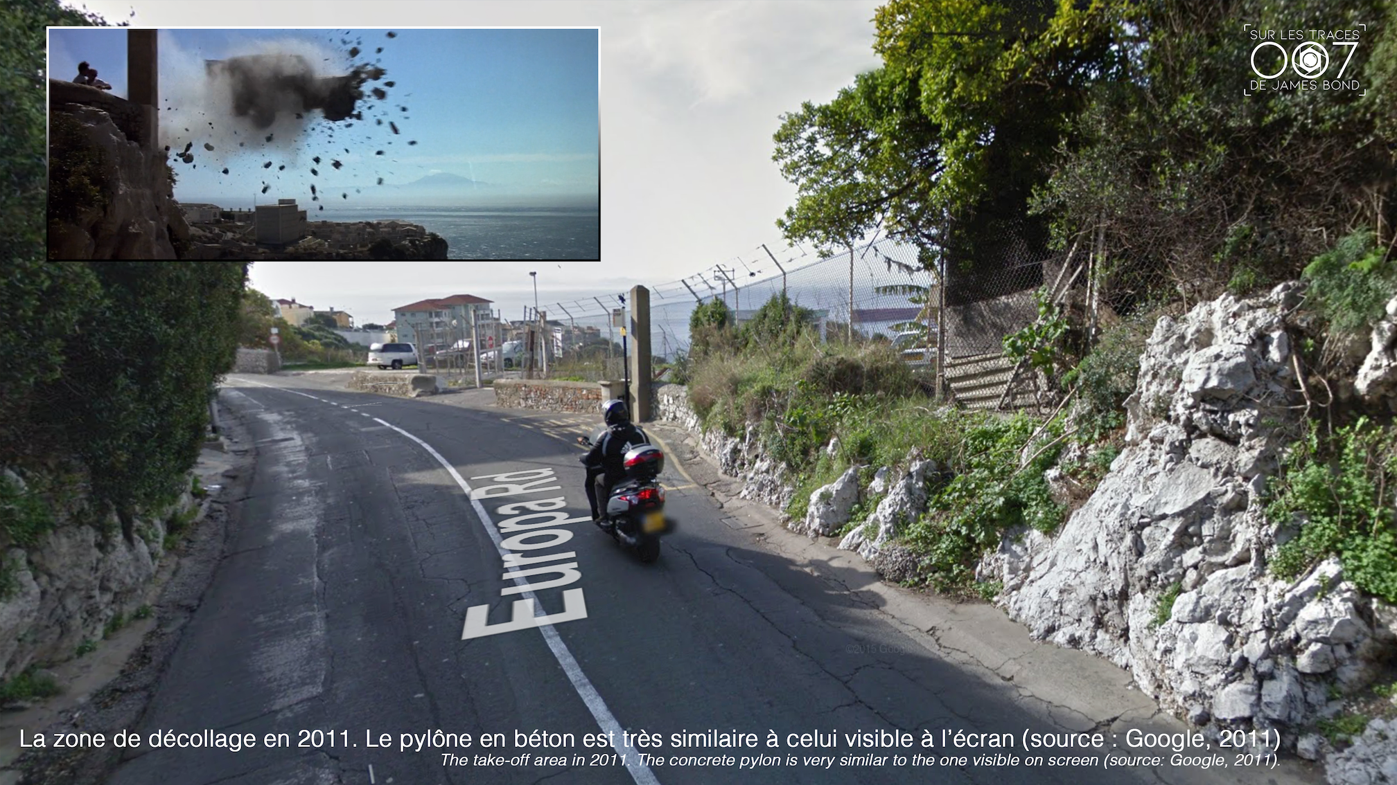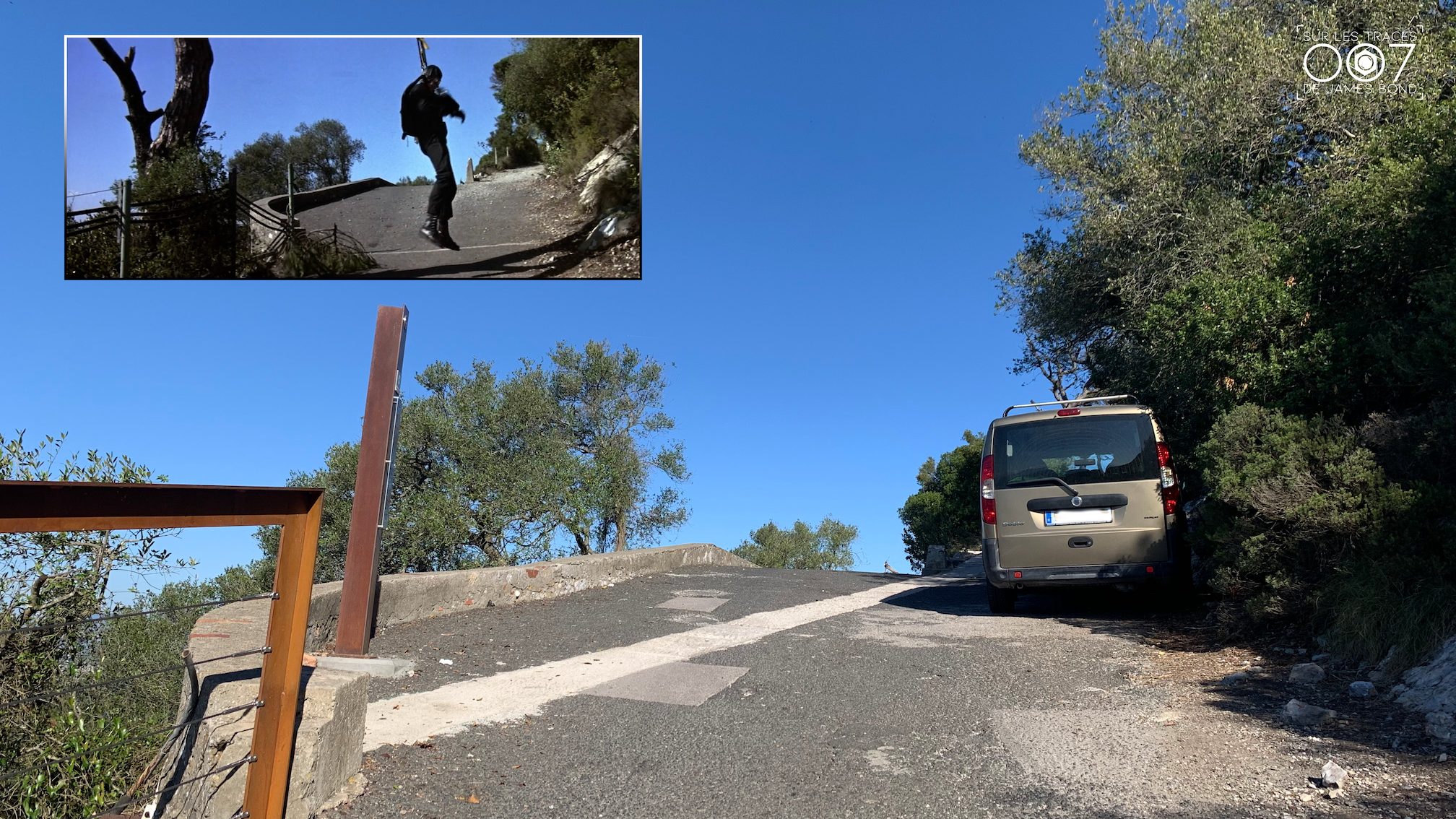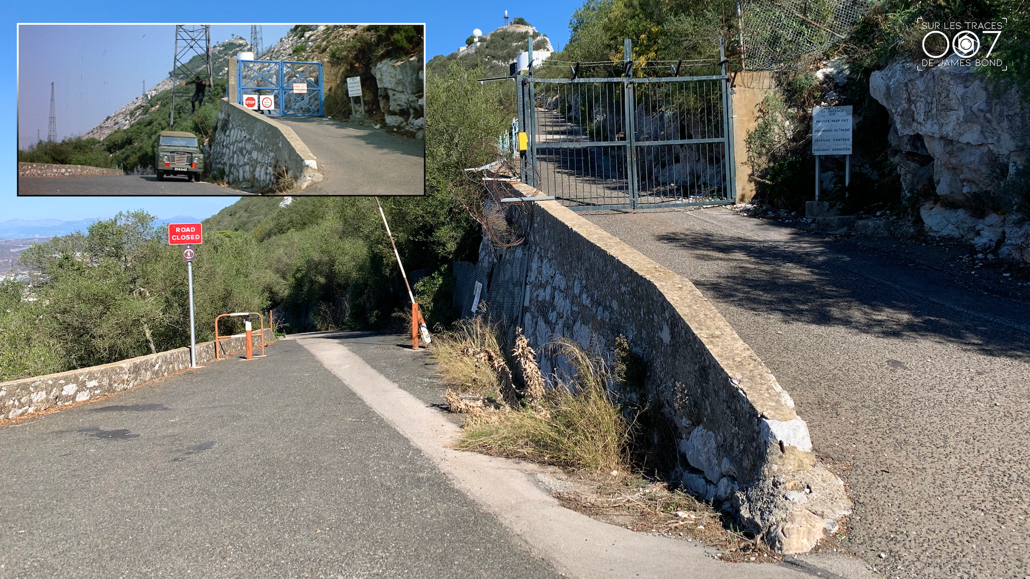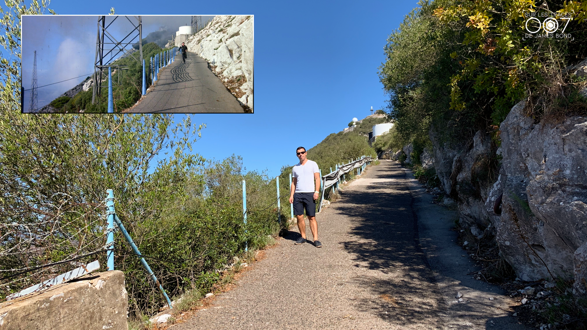 À quelques centaines de mètres du sommet, on rejoint un second lieu de tournage. Sur St Michael Road a été filmée la courte séquence où 002 atterrit dans un arbre avant d’être abattu par un militaire de la base. La scène d’infiltration des trois agents 00 a été tournée à Gibraltar le 15 septembre 1986 ; pour le saut, c’est le vétéran BJ Worth qui a doublé Bond.