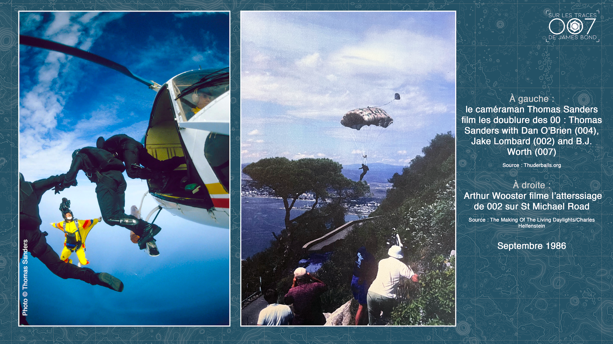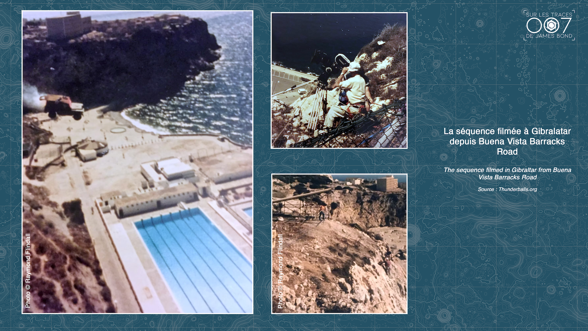 Un peu plus haut se situent les zones où Bond court, ainsi que celles où le faux agent du SMERSH élimine un garde et sectionne la corde de 004 — autant de plans identifiés récemment grâce au travail de Thomas.