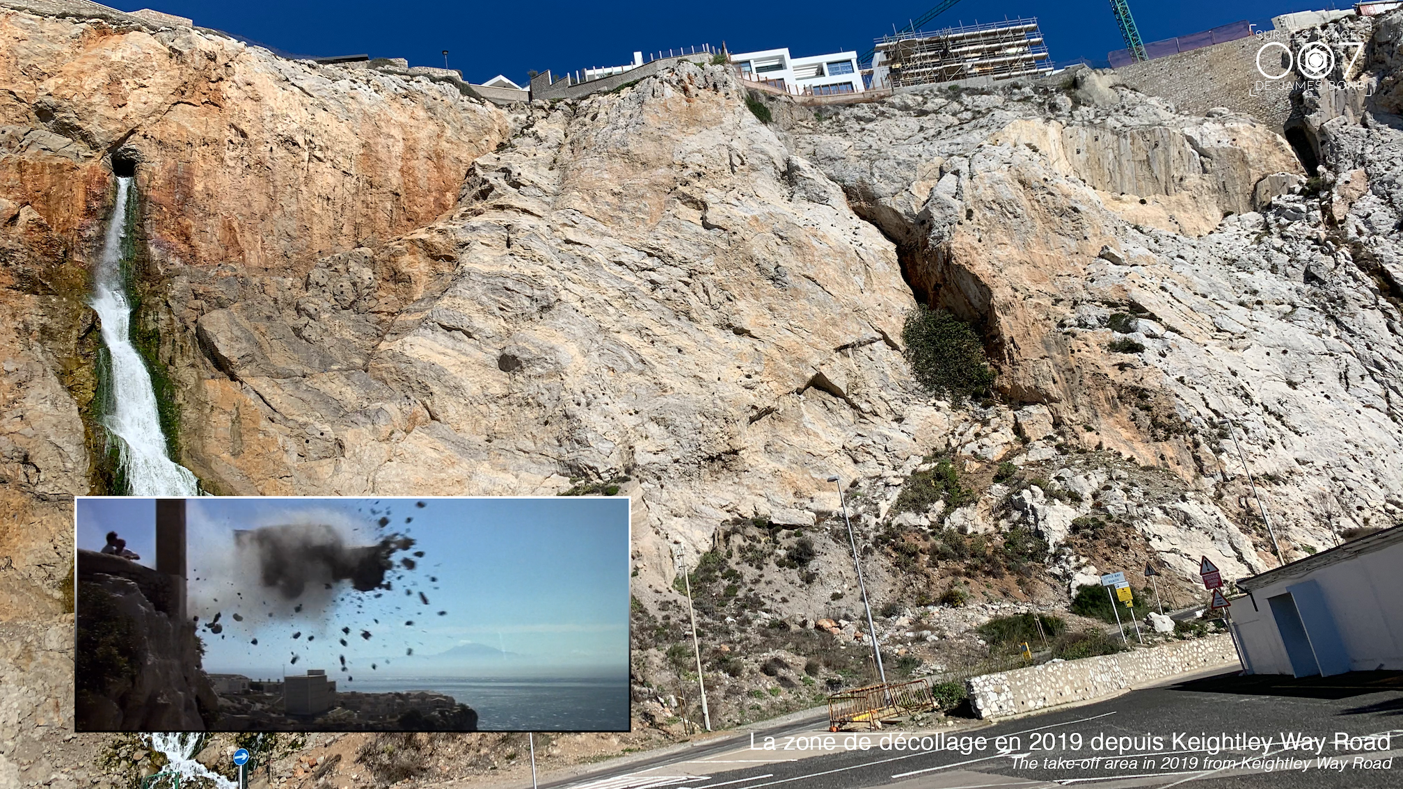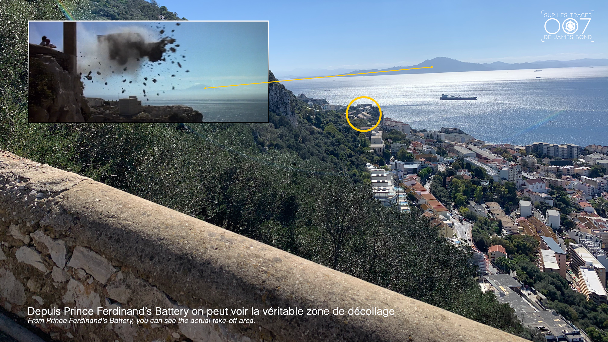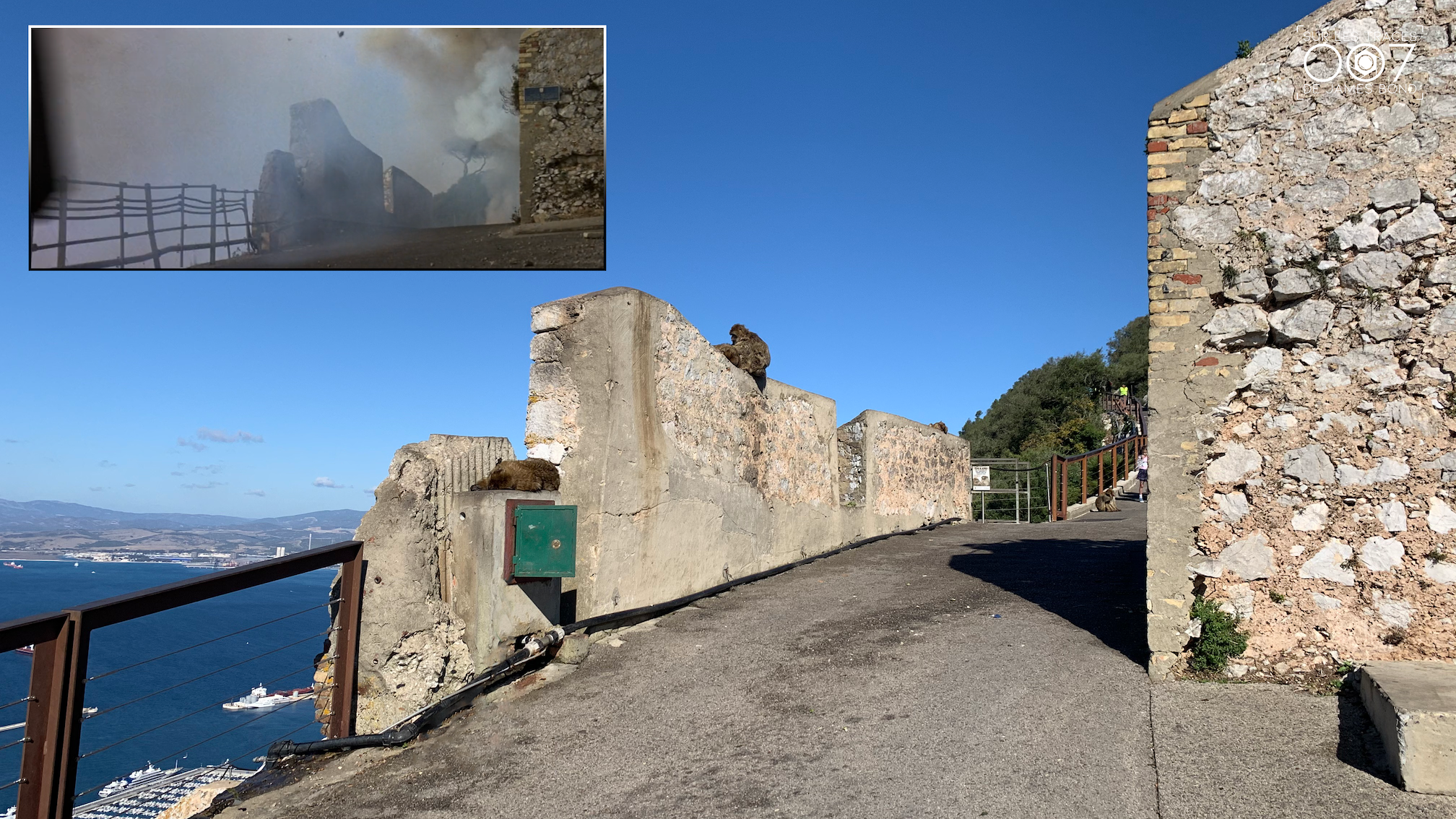 Une centaine de mètres plus au sud se trouve l’endroit où la Land Rover perd sa caisse de munitions, qui explose. Le plan est tourné au sommet du Charles V Wall, fortification du XVIᵉ siècle appuyée contre la paroi du Rocher.