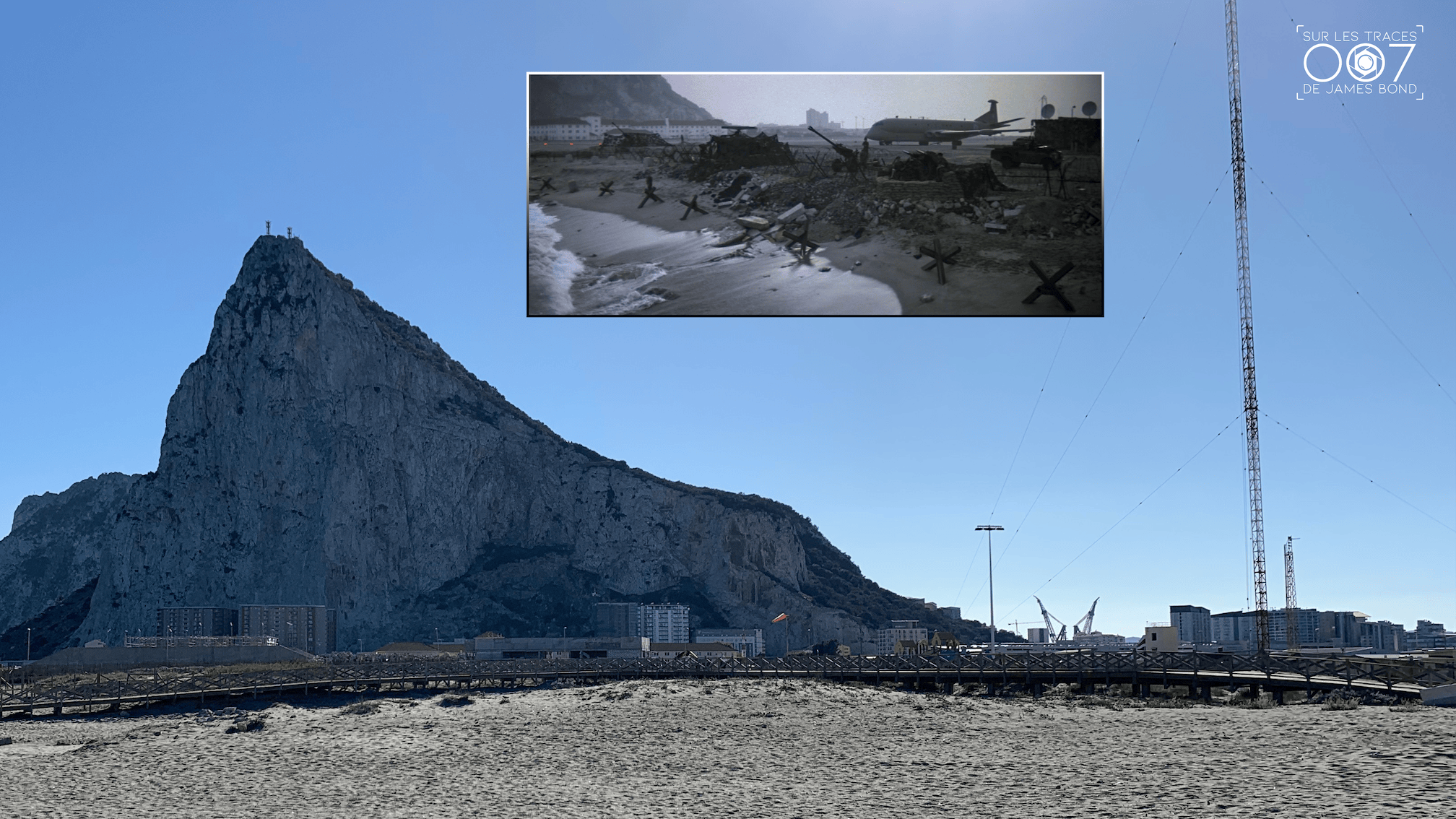 La première étape se trouve encore en Espagne, à La Línea de la Concepción. Depuis la plage, on peut aisément capturer le superbe plan d’ouverture du film. Entre nous et le Rocher : l’aéroport et la frontière menant à ce petit morceau du Royaume-Uni.