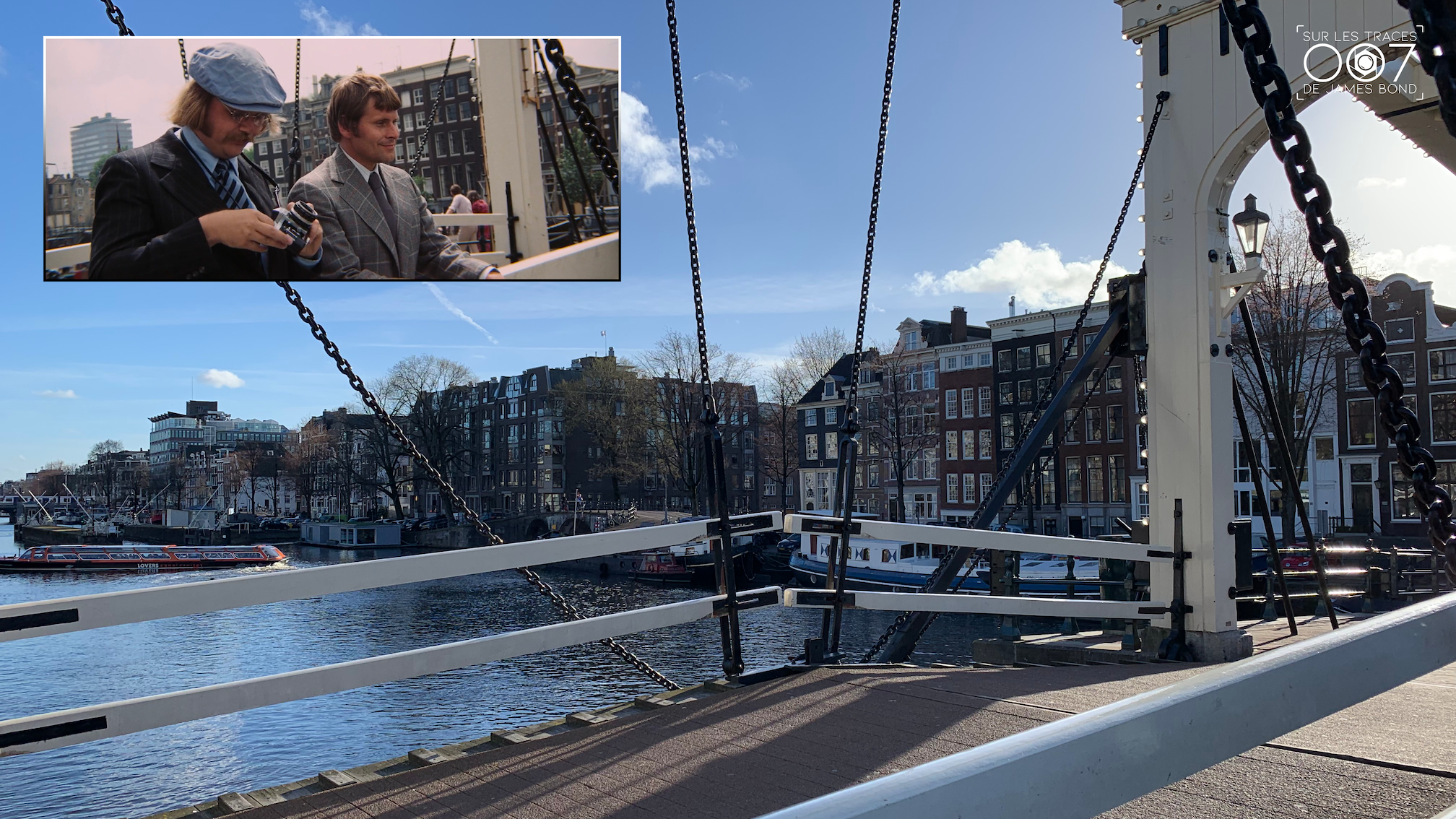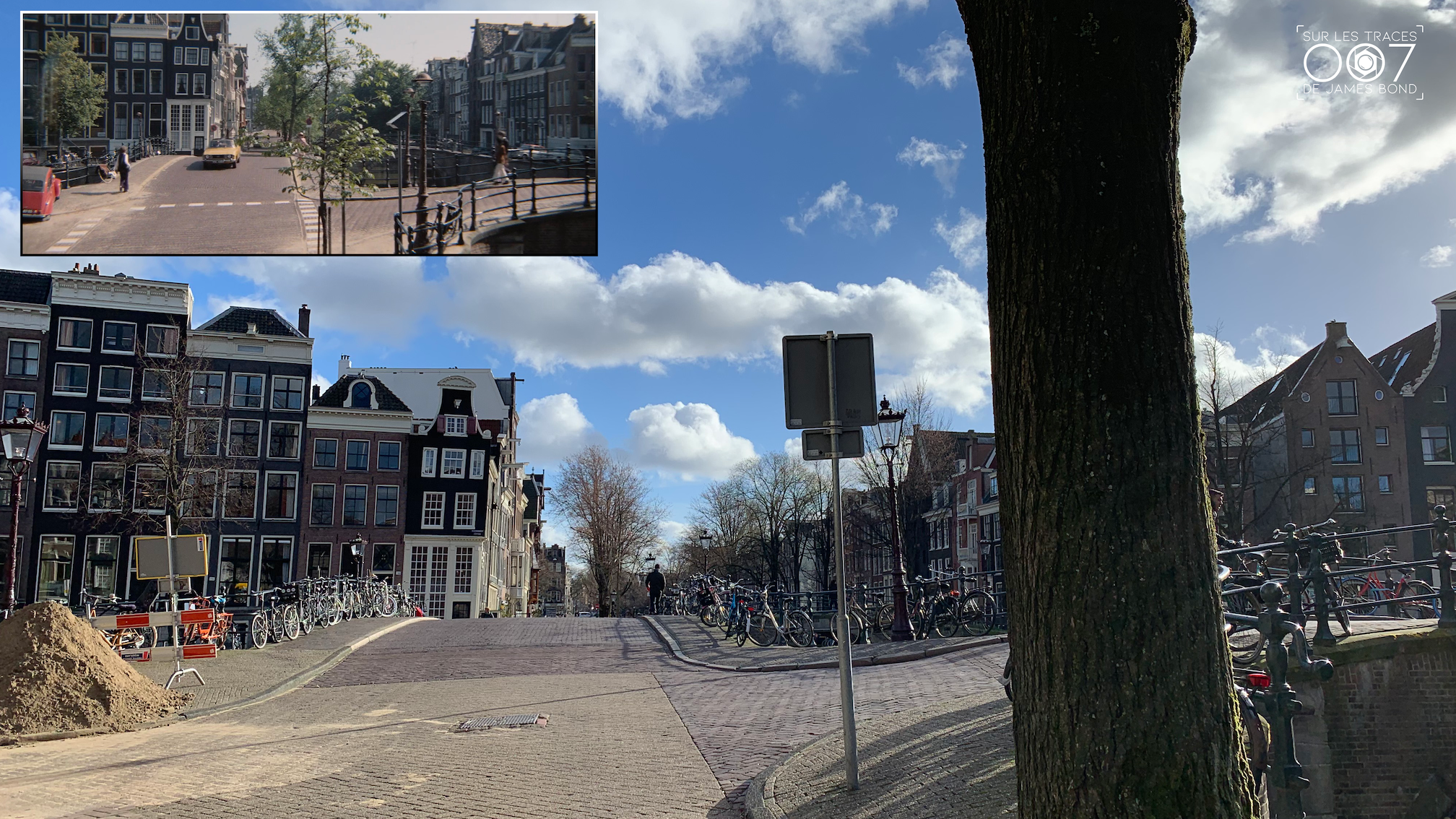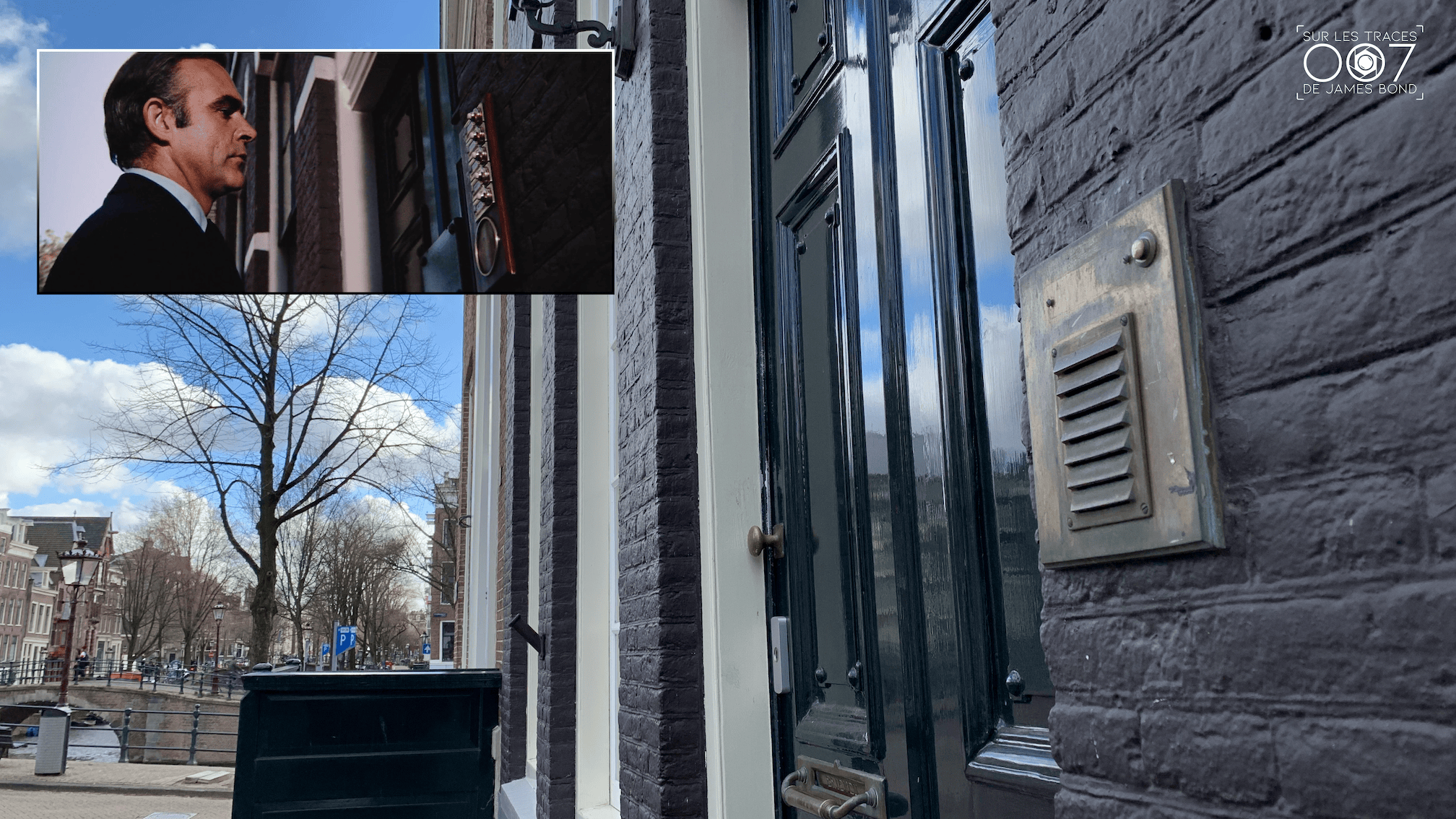 La séquence où James Bond arrive au volant de la Triumph volée à Peter Franks a été tournée sur la rive ouest du canal, au 35 Reguliersgracht. L’endroit possède un charme fou et reste très facile à identifier.