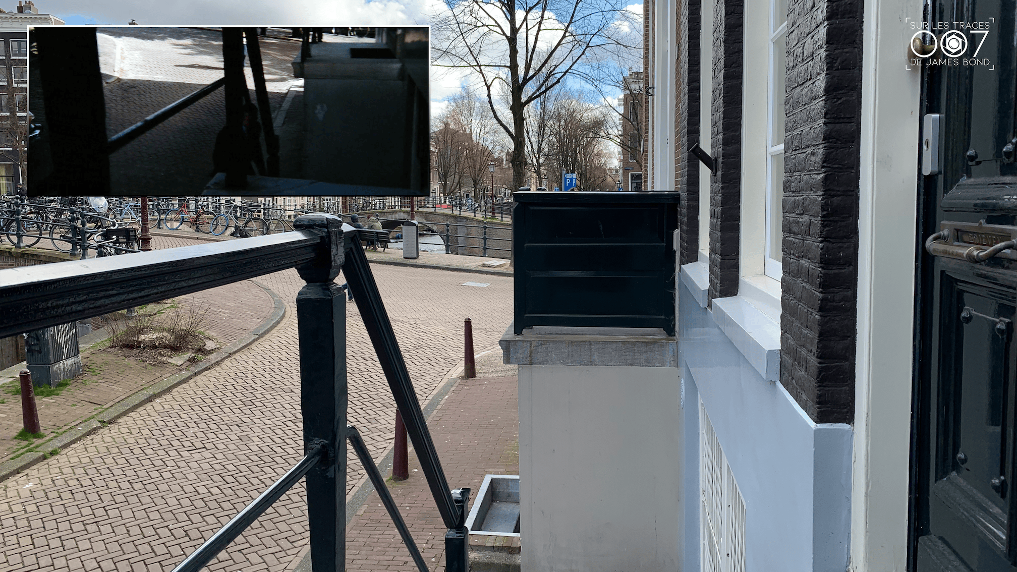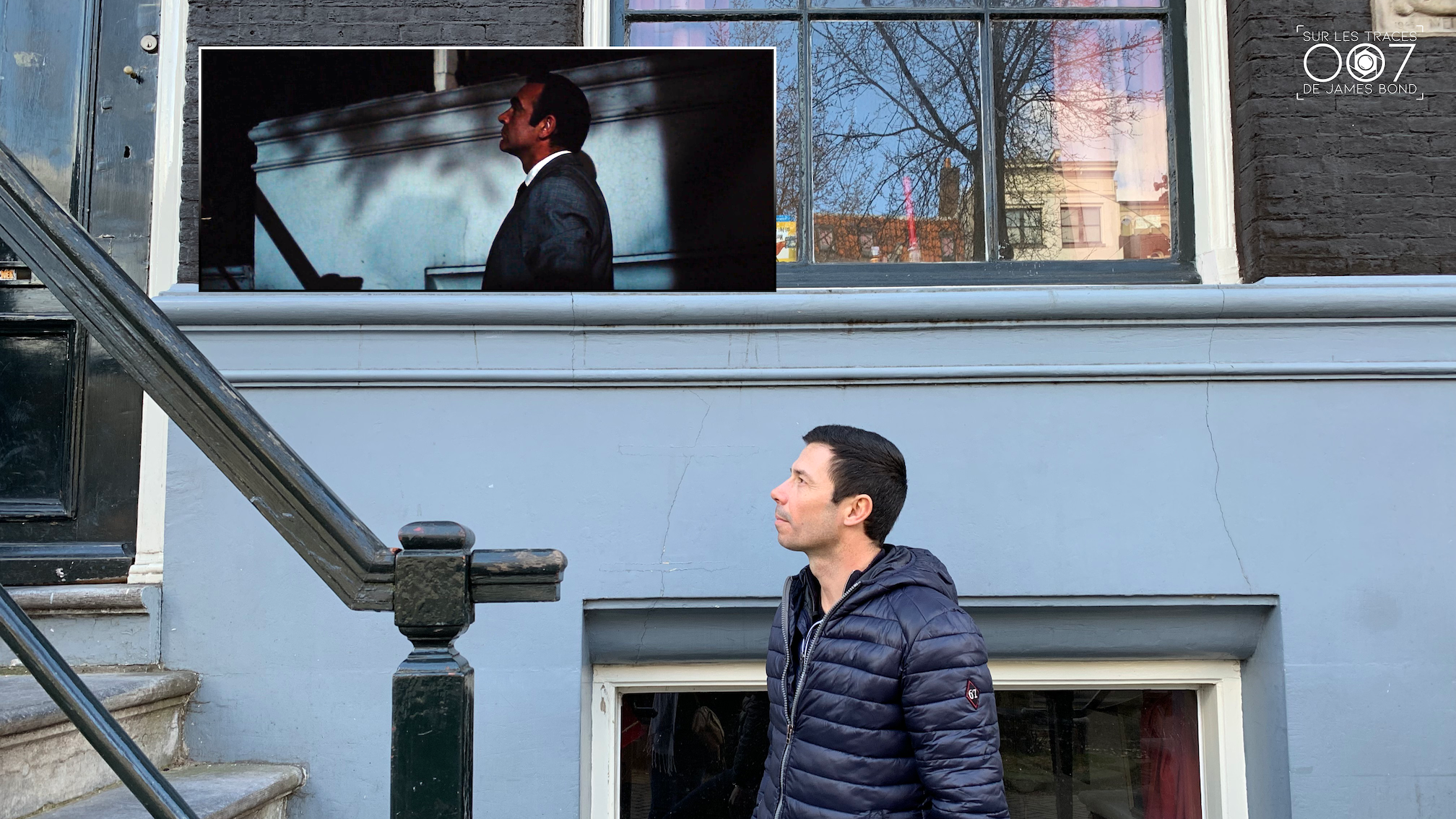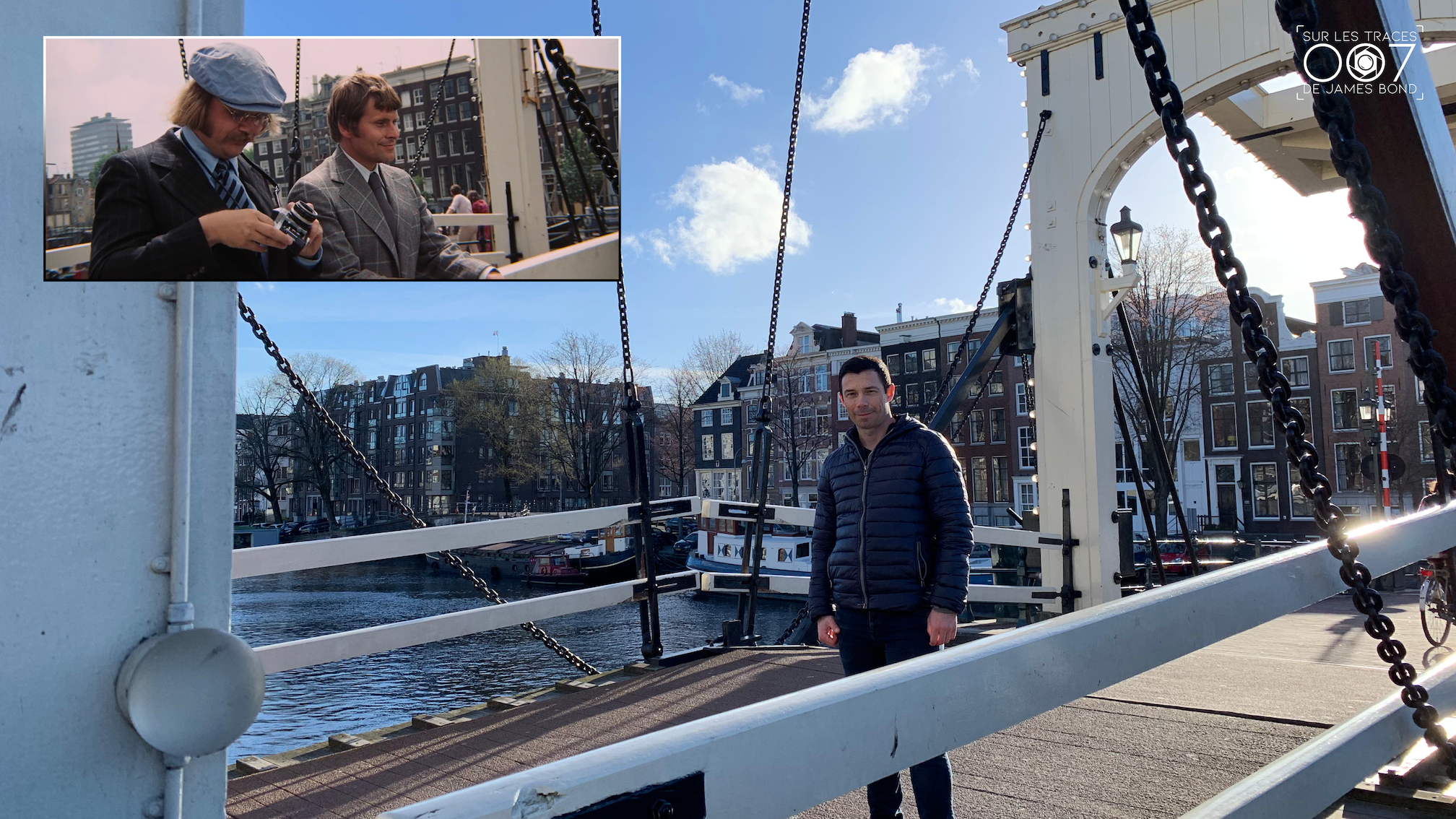 La séquence où James Bond arrive au volant de la Triumph volée à Peter Franks a été tournée sur la rive ouest du canal, au 35 Reguliersgracht. L’endroit possède un charme fou et reste très facile à identifier.