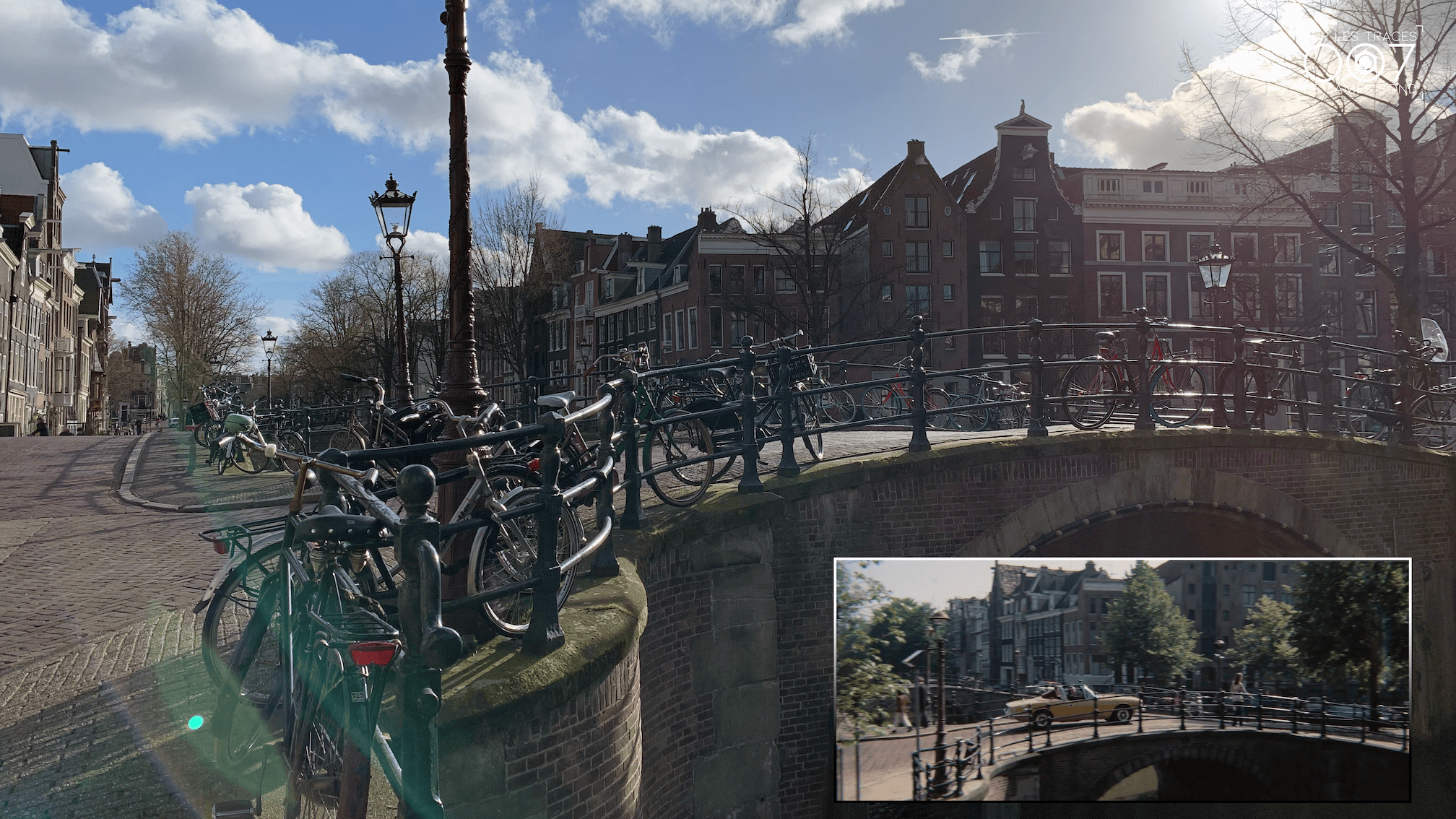 Nous avons néanmoins profité des services et de la grande gentillesse de la compagnie maritime Kooij pour effectuer une balade sur l’Amstel, qui permet déjà de retrouver une grande partie de l’atmosphère du film. De retour à terre, nous nous sommes rendus jusqu’au Magere Brug afin de retrouver les angles de prise de vue de Wint et Kidd. Et « nous avons fait des photos des canaux pour les enfants. »